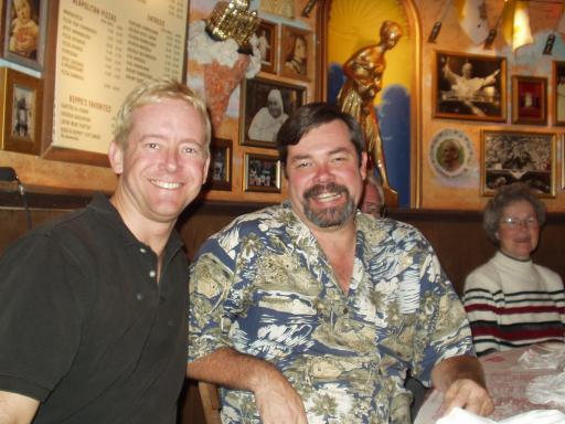 Don Livingston, Jr., the irreverent Russell Livingston, and in the background is Russell's mom, Trevie.