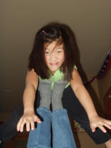 Now it's time for airplane rides. Ron lofts Shan by judicious application of pedal extremities. Hm, can you say the word "pedantic"?