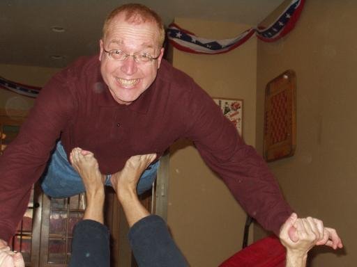 up he goes! What a helpful houseguest Don is! Nota bene, all viewers of these pictures: it's fun to invite Don to stay with you!