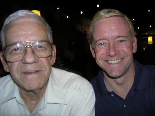 Here I'm playing with self-portrait mode again. This is my dad and I. Dad is Don, Sr., by the way. I think this was at the Macaroni Grill. I'd never been to one before. The food was entirely adequate. I'd go again if I couldn't think of some place more creative. |