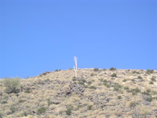 After they die, saguaros leave a skeleton that takes years to decompose. Here we see one such still standing.